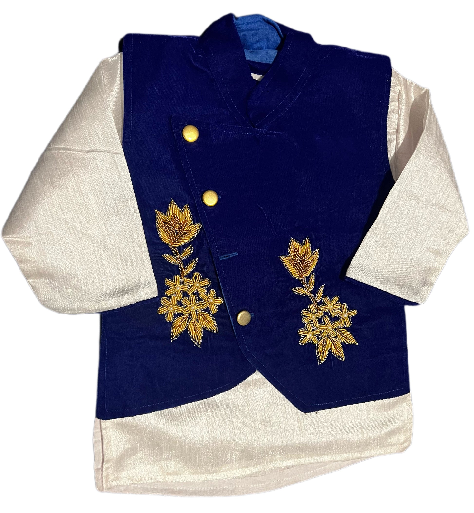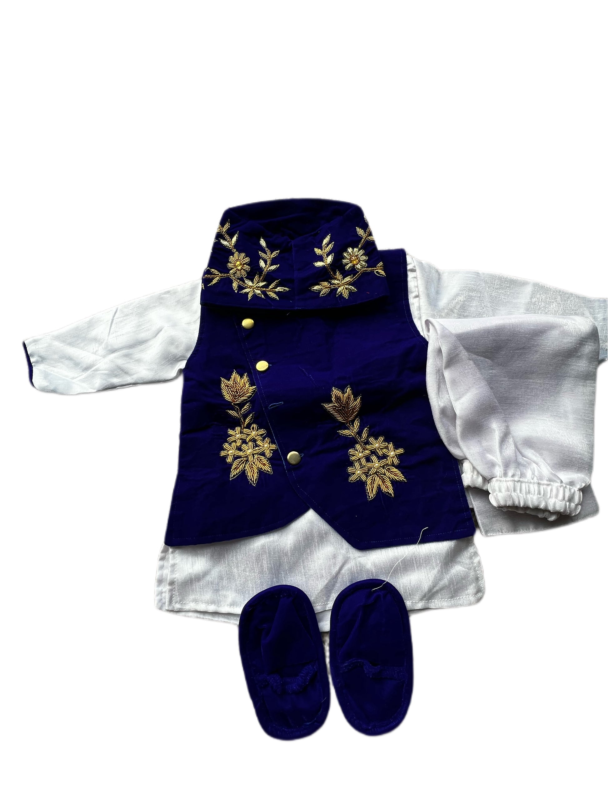 Introducing our Baby Boy 6-12 month outfit, made from soft velvet and beautifully embroidered for special occasions like Pasne and parties. Dress your little one in style and comfort with this elegant and charming outfit, perfect for making memories.